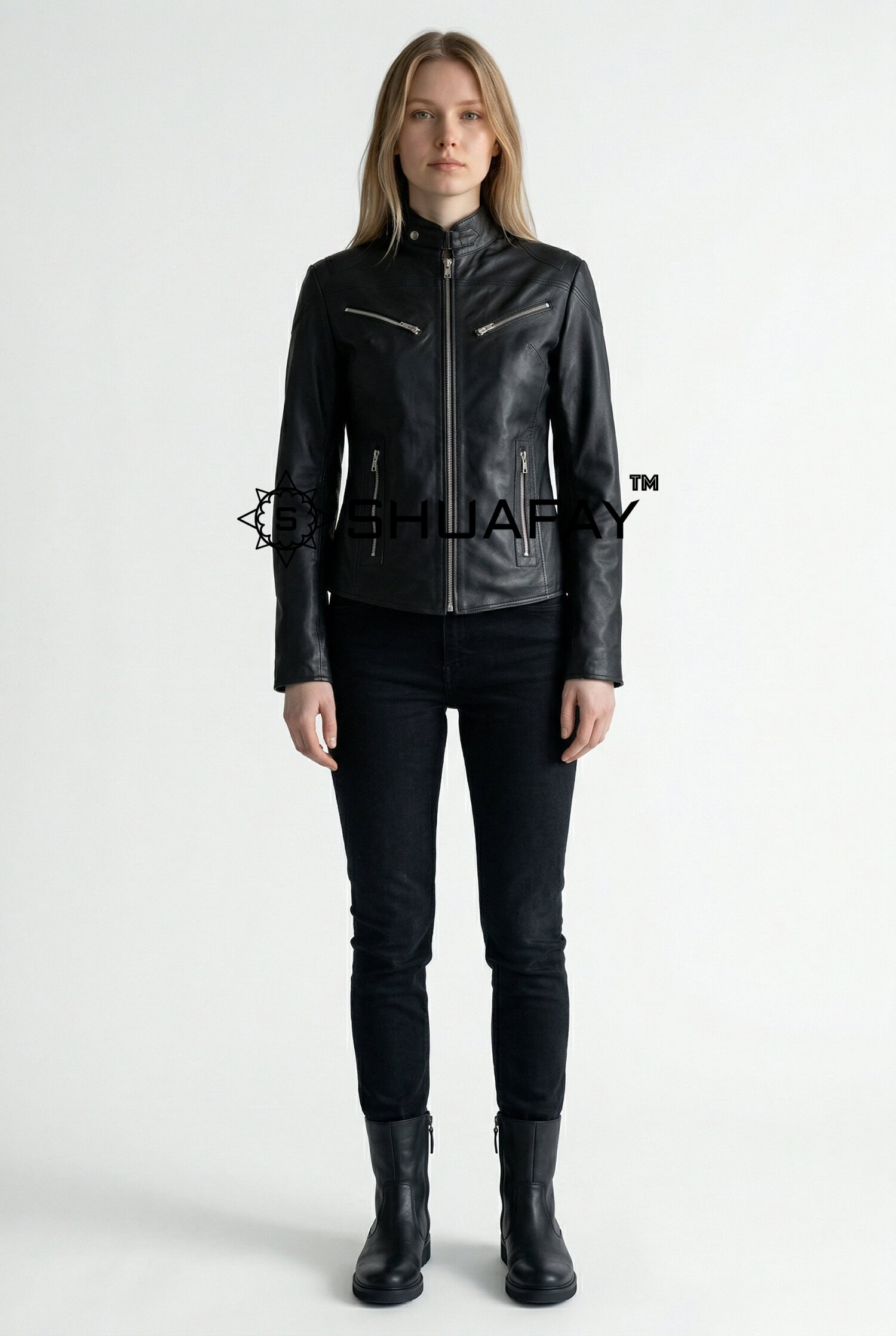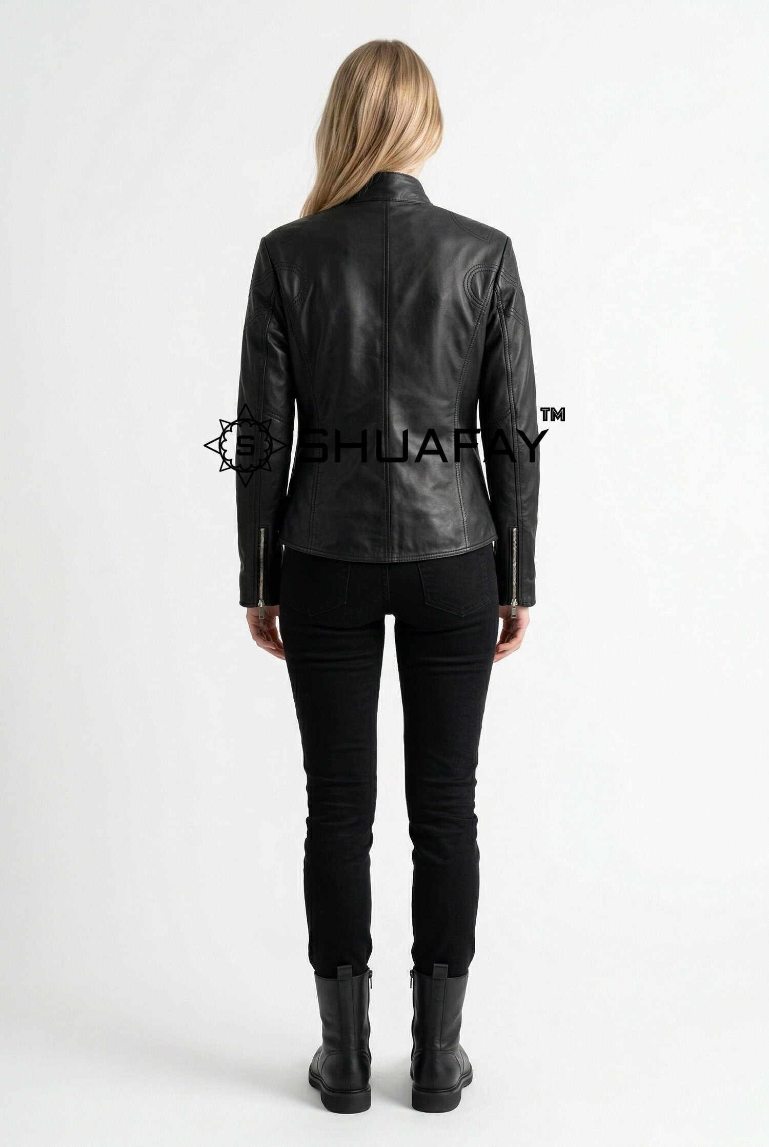 The Sheepskin Elegance Jacket by SHUAFAY is a timeless leather piece created for women who appreciate subtle sophistication, clean structure, and premium craftsmanship. Made from high-quality sheepskin leather, this jacket offers a smooth finish, comfortable wear, and long-lasting durability while maintaining a sleek, elegant silhouette.